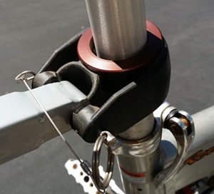 The specially designed hitch and rear connector allows for rotation on 3 axes. The hitch easily attaches to bicycle seat posts and comes in 2 sizes to accommodate all seat posts.