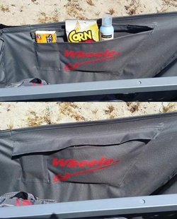 The attachable heavy duty lightweight storage bag is designed to accommodate wetsuits, towels, gear and other supplies for hands-free cycling. The interior contains astorage pocket for