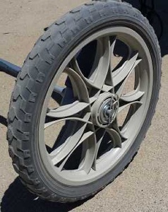 After years of testing varied road conditions we chose wheels that provide sealed bearings for enhanced performance and no maintenance. The rims are 1 piece molded high strength molded plastic. The tires are 13” diameter made from EVA puncture proof foam providing tracking and stability for ultimate peace of mind.